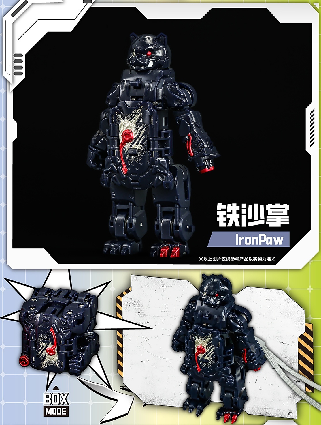 ボックス形態の四角い形を、下に向けて軽く振るだけで動物形態に変形するという、今までにない“ワンタッチ変形"が最大の特徴です。