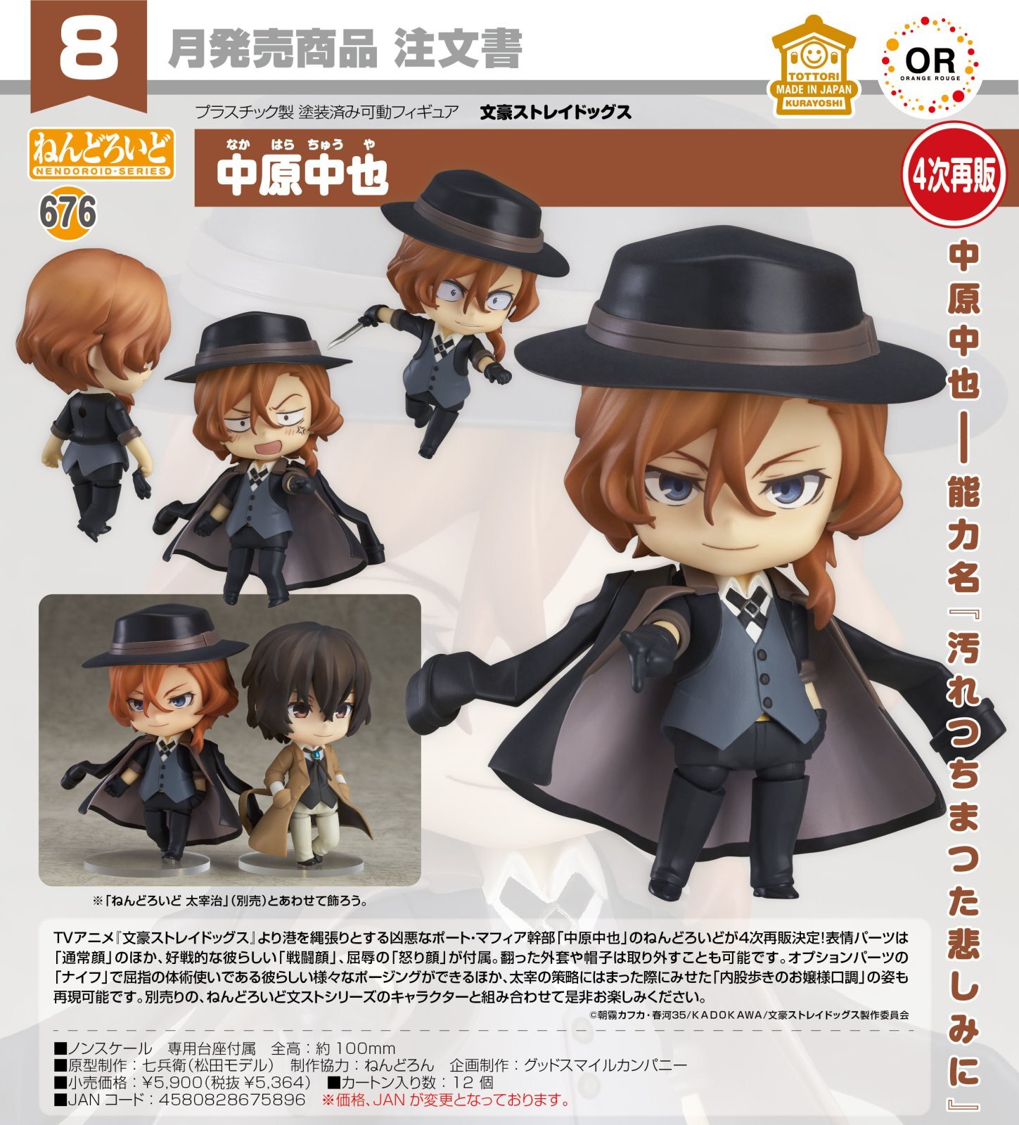 港を縄張りとする凶悪なポート・マフィア幹部「中原中也」のねんどろいどが4次再販決定!