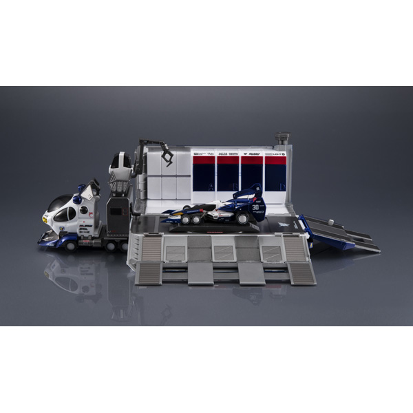 後部のトレーラー部分を展開する事により、トレーラーモードから基地モードへの変形が可能。