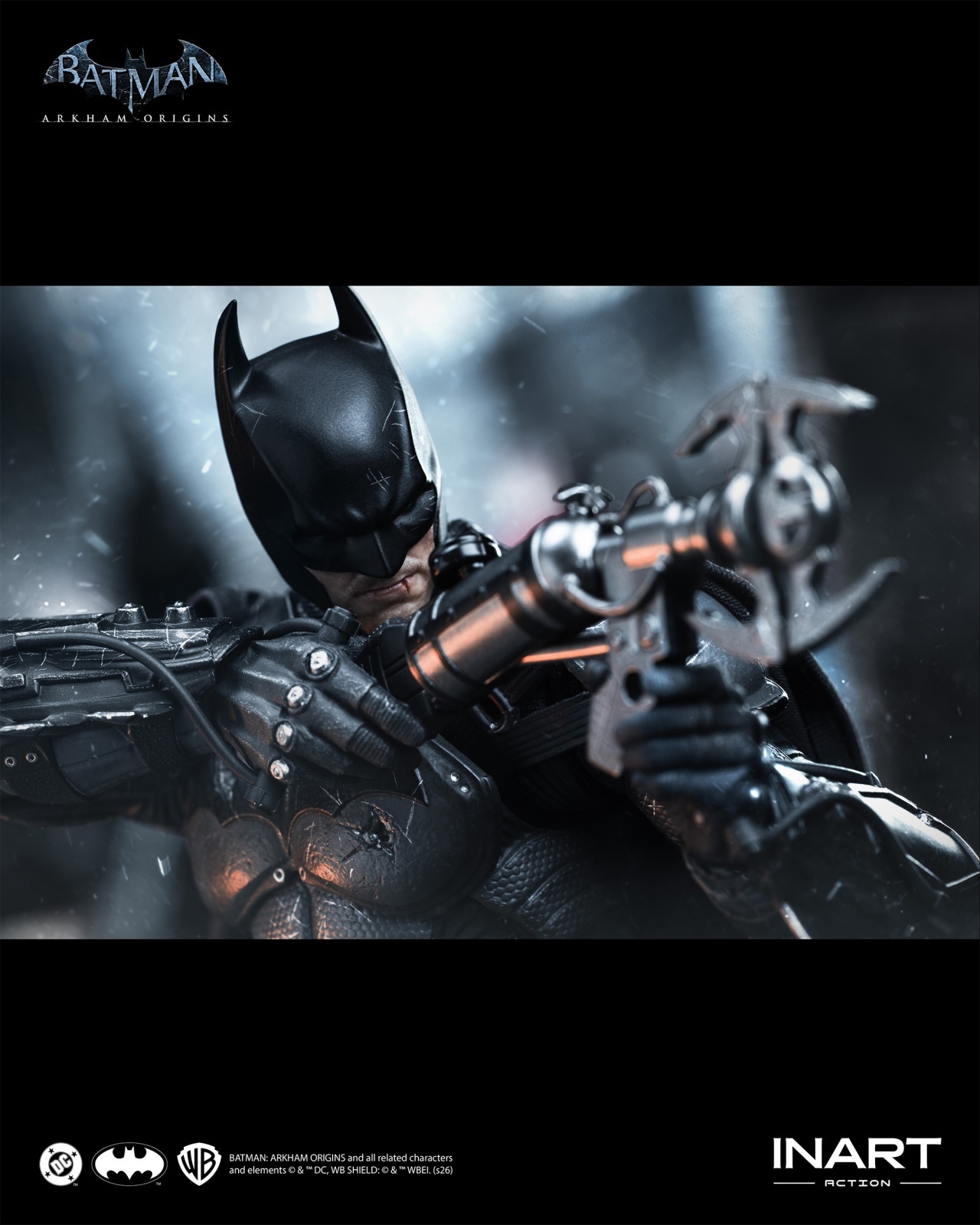 本フィギュアは、『バットマン:アーカム・ビギンズ』におけるバトルダメージを受けたバットマンの姿を忠実に再現し、