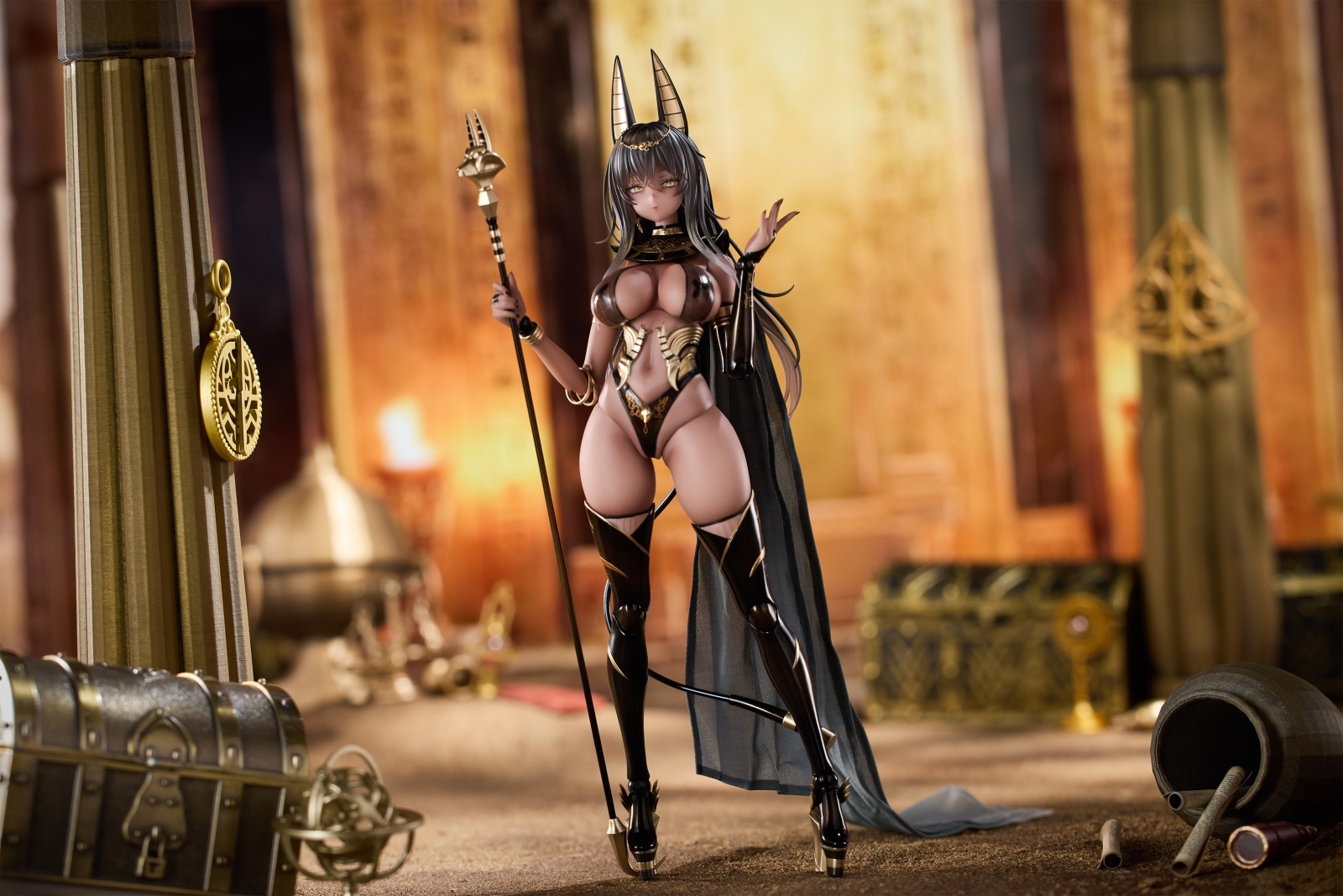 人気イラストレーター「DISH」氏の原画をもとに、黒金を纏う妖艶な神殿司祭を精緻に立体化しました。