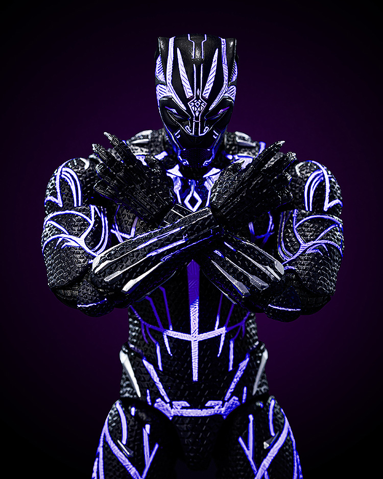 全身にわたる細部へのこだわりが、ワカンダの王の姿を忠実に再現しています。