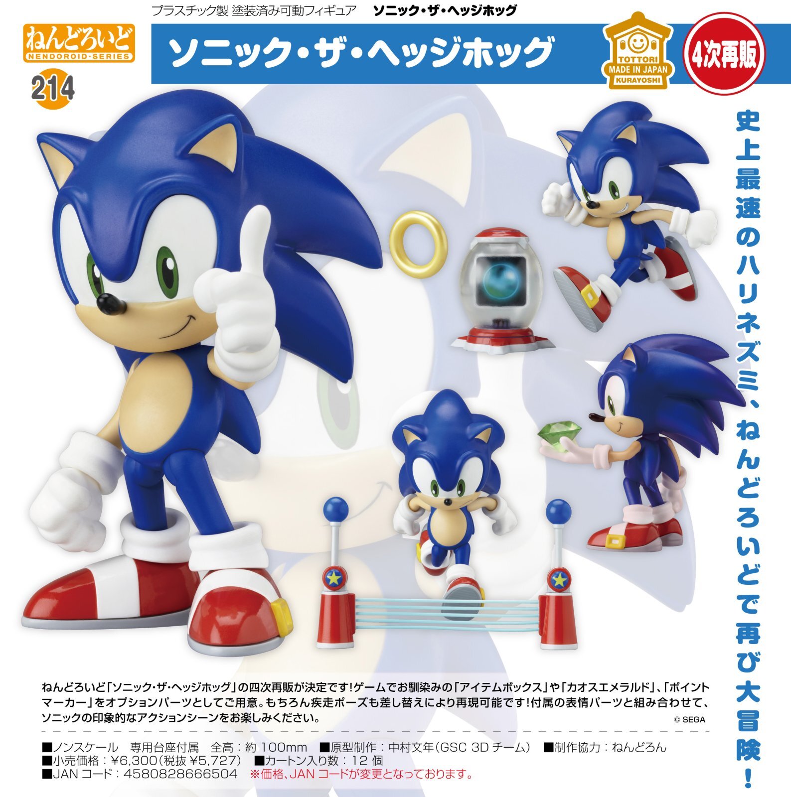 ねんどろいど「ソニック・ザ・ヘッジホッグ」の四次再販が決定です!