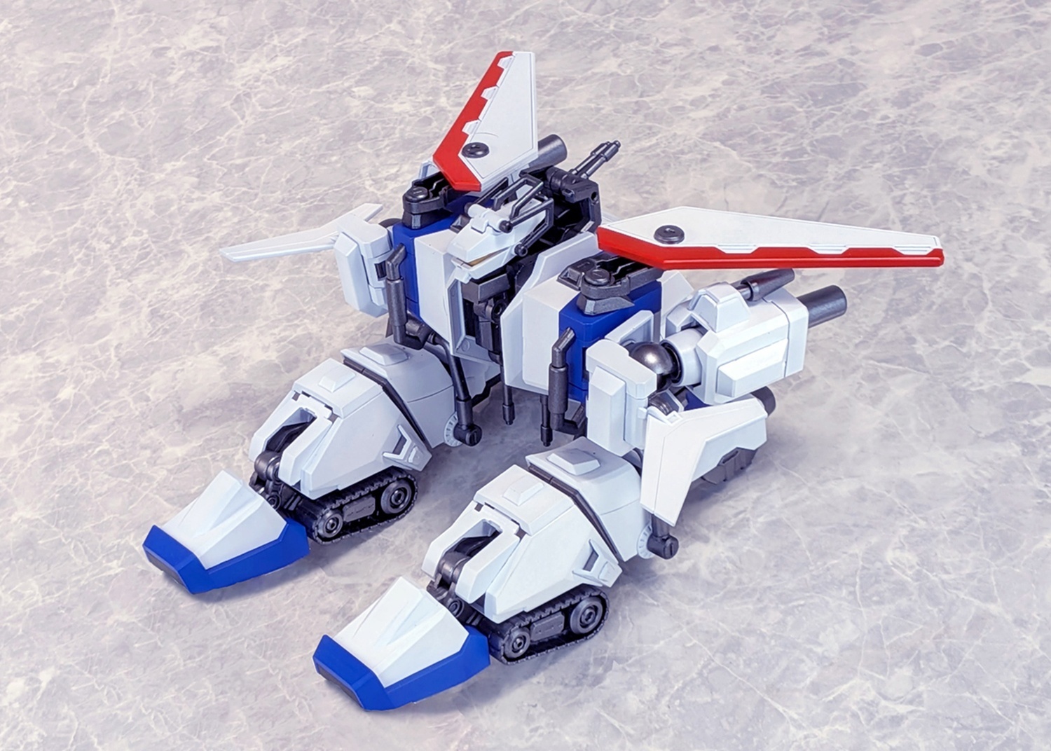 ・格闘戦用のアタック・モードに加えて、地上走行特化型のタンク・モード、飛行タイプのヴィークル・モードに変形可能。