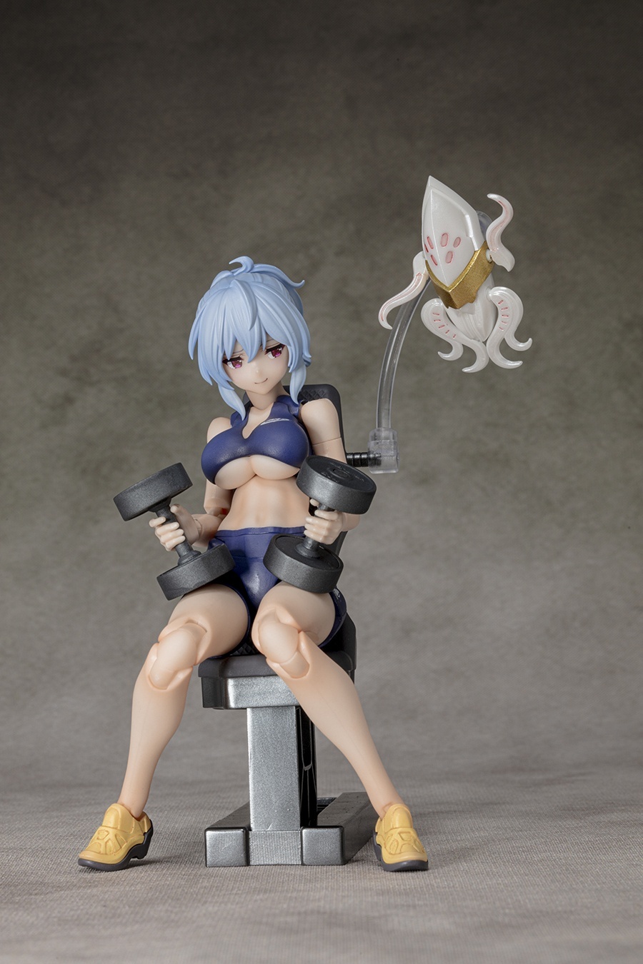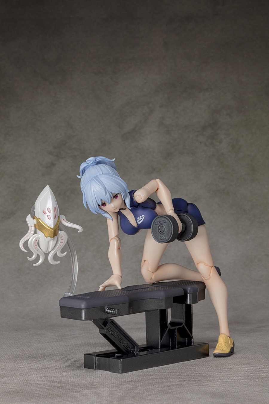 トレーニングの様子を再現できるよう、ダンベルやフィットネスベンチ、ドリンクボトルなど、細かいアイテムも充実。