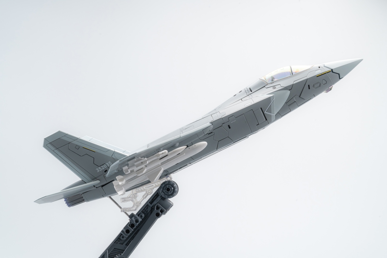 シャープな機体ラインとマットな塗装が洗練された美しさを際立たせます。専用台座も付属。