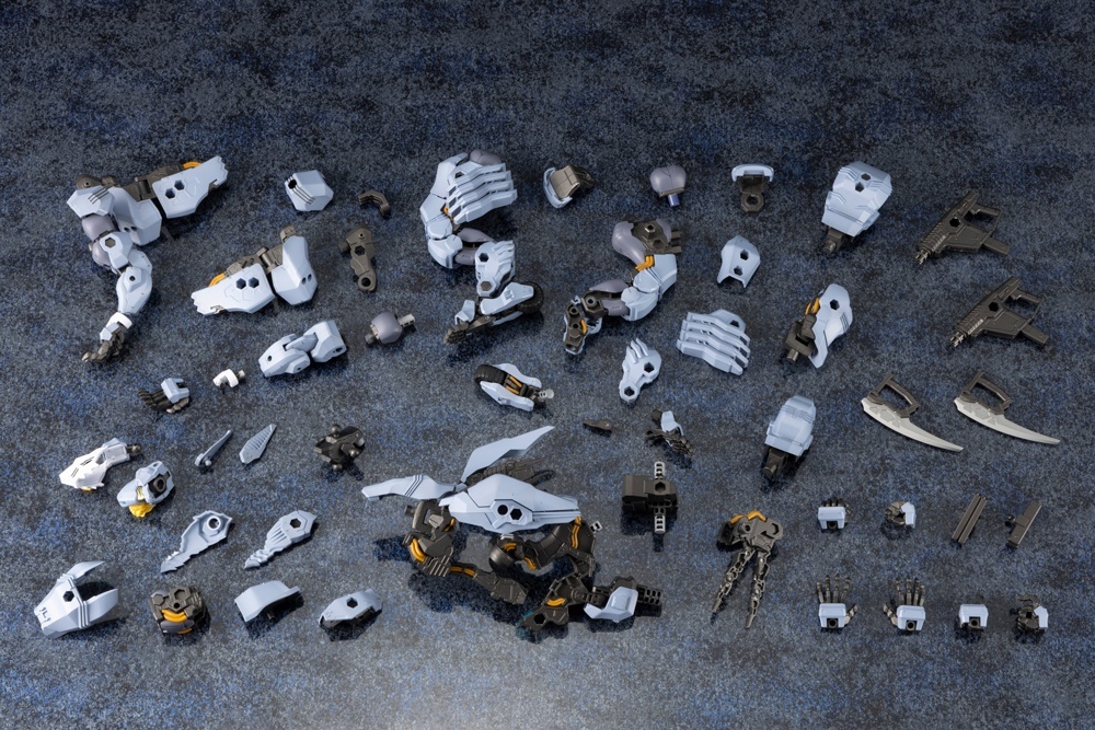 ・ヒト型形態は武器保持用の手首パーツと腕基部の広範囲な可動によってM.S.Gウェポンやブースターパックなどの様々な武器をリアルに構えることが可能です。